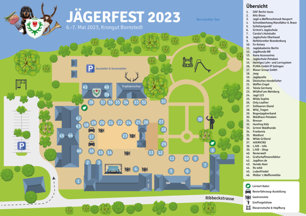Gemeinsam mit 46 Ausstellern organisiert der Landesjagdverband Brandenburg (LJVB) eine jagdliche Attraktion im Herzen der Landeshauptstadt Potsdam. Als Veranstaltungsort dient das malerische Krongut Bornstedt, unweit vom Schloss Sanssouci gelegen. Über den ganzen Tag ist ein buntes Rahmenprogramm für die ganze Familie geplant. Zusätzlich wird an diesem Tag die Landesdelegiertenversammlung des LJVB durchgeführt. Zu dieser sind knapp 250 Delegierte aus den vier Kreisjagdverbänden und den 25 Jagdverbänden aus dem ganzen Land eingeladen.