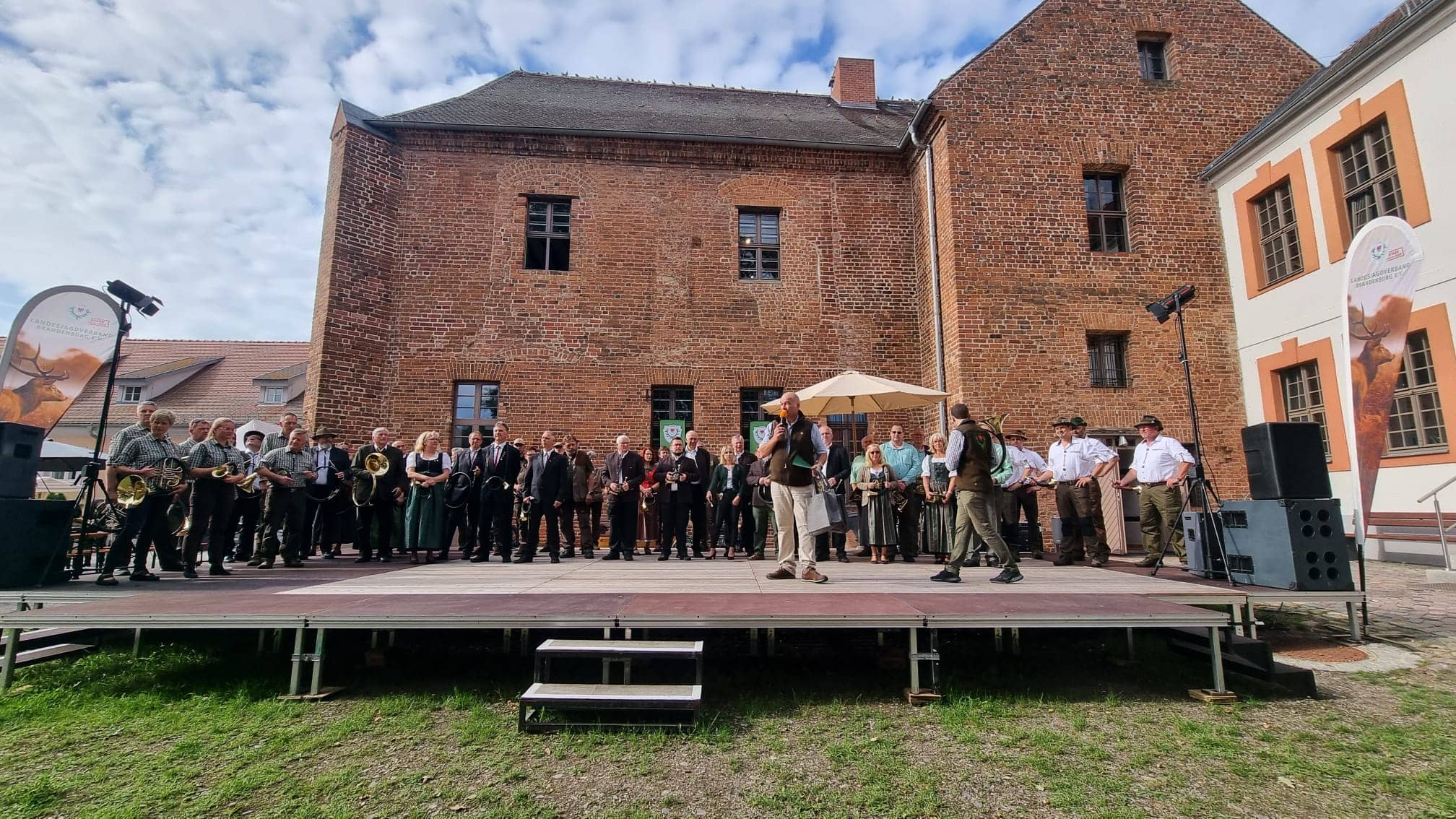 Auf Initiative der Jagdhornbläsergruppe „Barnsdorfer Hörnerklang“ und auf Einladung des Landesjagdverbandes Brandenburg (LJVB), des Jagdverbandes Beeskow und der Burg Beeskow kamen am 2. September zahlreiche brandenburgische Jagdhornbläsergruppen zum ersten Bläsertreffen auf das eindrucksvolle Gelände der Burg Beeskow.