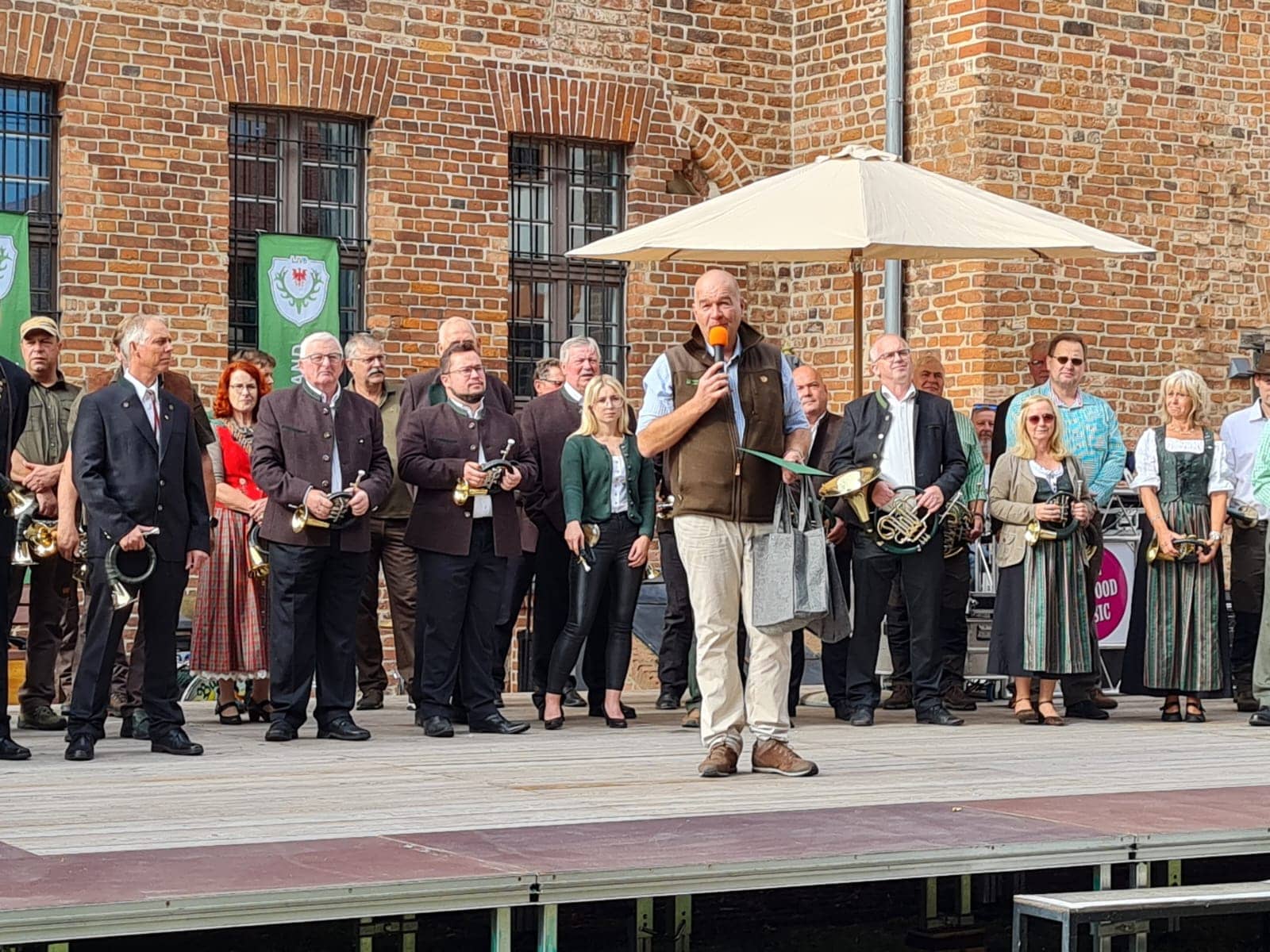 Aus dem Verbandsgebiet des Jagdverbandes Prenzlau nahm die Jagdhornbläsergruppe Weiße Berge Seelübbe teil, deren Mitglieder bei strahlendem Sonnenschein vor zahlreich erschienenen Zuhörern ihr Können darboten.
